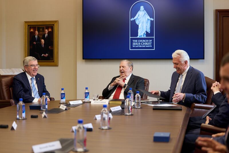 Also participating in the meeting, held in the Church Administration Building, were IOC Director General Christophe de Kepper and Olympic Games Executive Director Christophe Dubi. According to information published on ChurchofJesusChrist.org, a delegation for the 2034 Olympic Winter Games in Salt Lake City was also present. It was led by Fraser Bullock, president and CEO of the Salt Lake City-Utah Committee for the Games. He was joined by committee chair Catherine Raney Norman, Salt Lake City Mayor Erin Mendenhall, Don Stirling of the Larry H. & Gail Miller Family Foundation and 2024 Paris Games silver medalist Kenneth Rooks.