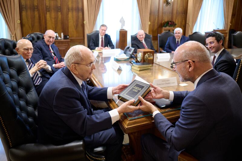 President Russell M. Nelson welcomed the Portuguese and Dominican Republic ambassadors to the United States to Temple Square. (See photos below.)