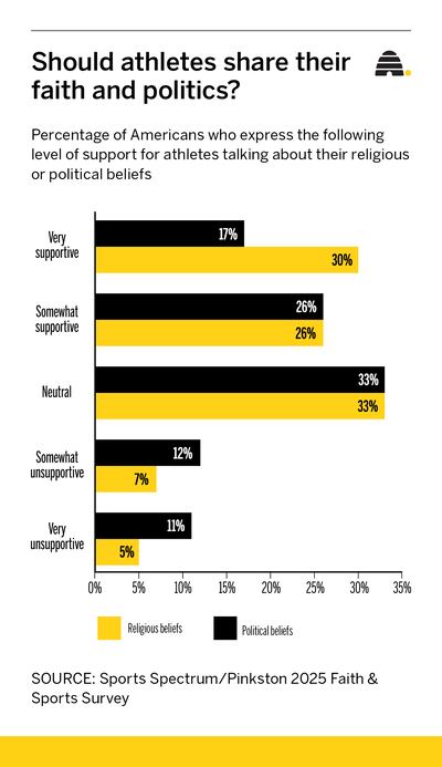 More sports fans appreciate athletes discussing their faith than appreciate athletes discussing political issues that matter to them, according to the new survey.