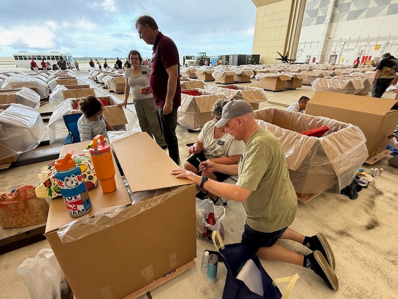 For a decade, members of the Church of Jesus Christ have both volunteered at and donated items to Operation Christmas Drop. This year, Elder and Sister Brooksby — two senior humanitarian missionaries in the Micronesia Guam Mission of the church — helped handle the operation’s paperwork and volunteer coordination efforts. They estimated that about 35 of the volunteers were members of the church.