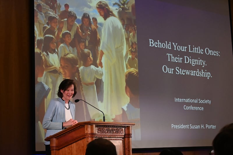 President Porter invited listeners to consider Christ’s invitation to behold our little ones as we plan to strengthen and teach children — “In other words, to enhance their dignity as children of God,” she said.
