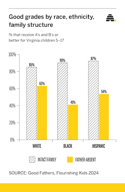 This means that when it comes to the school success of Virginia’s kids, there is not so much a racial divide as there is a father divide.