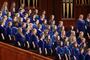 A BYU-Idaho choir provided music throughout the afternoon session. They sang “Now Let Us Rejoice,” “I’ll Go Where You Want Me to Go,” “I Feel My Savior’s Love” and “Thy Spirit, Lord, Has Stirred Our Souls.”