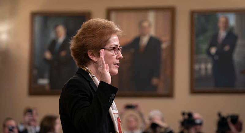 “Our Ukraine policy has been into disarray, and shady interests the world over have learned how little it takes to remove an American Ambassador who does not give them what they want,” she testified. “After these events what foreign official, corrupt or not, could be blamed for wondering whether the ambassador represents the president’s views? And what U.S. ambassador could be blamed for haboring the fear that they cannot count on our government to support them as they implement stated U.S. policy and defend U.S. interests.”