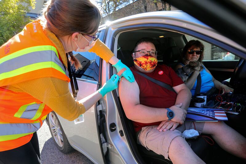 Richard Villata, 63, has gotten a flu shot every year since he’s been a member of the military reserve, which totals more than two decades. But this year was the first time he got one in his car. On Tuesday he pulled up to the Salt Lake City veterans hospital in his 1998 Jeep Grand Cherokee and stuck his left arm out the window. A nurse wearing a mask administered the vaccine.