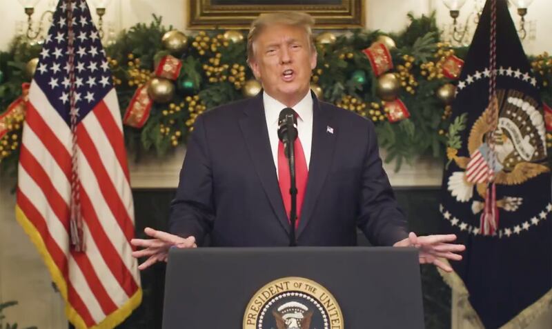 In a series of videos the president posted to Twitter Tuesday evening, Trump said the $900 billon coronavirus relief effort was “much different than anticipated,” and he was disappointed in the size of $600 direct payment checks to be included in the bill.