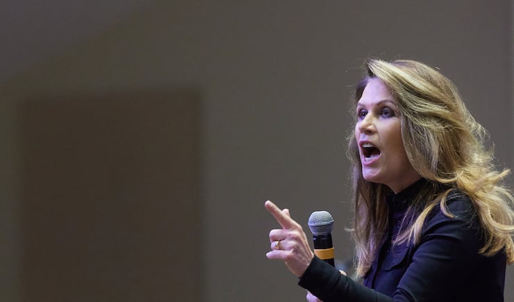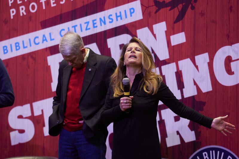 DALTON, Ga. — When former Congresswoman Michelle Bachmann — an erstwhile presidential hopeful and outspoken supporter of President Donald Trump — entered the sanctuary of Salem Baptist Church on Friday evening here, the audience rose to its feet.