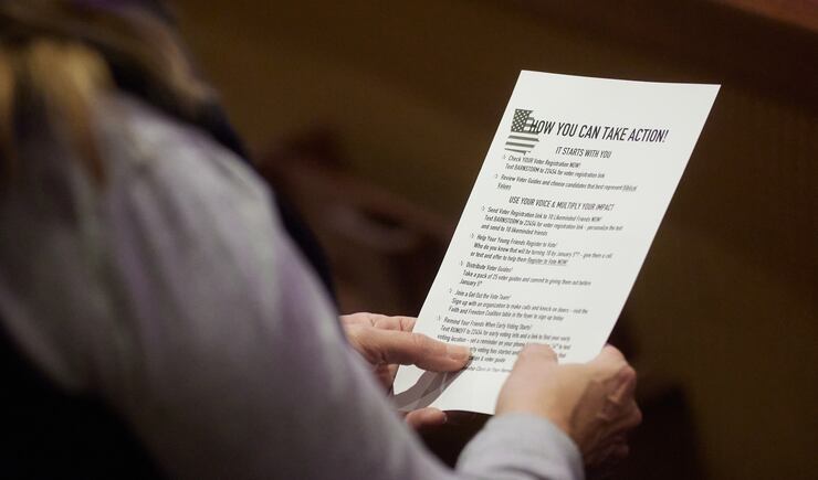 Before the event closed with a prayer, Bachmann and local organizers and sponsors of the event detailed ways to get out the vote: registering, talking to friends, making sure they have a voting plan, following up, taking people to the polls if need be.