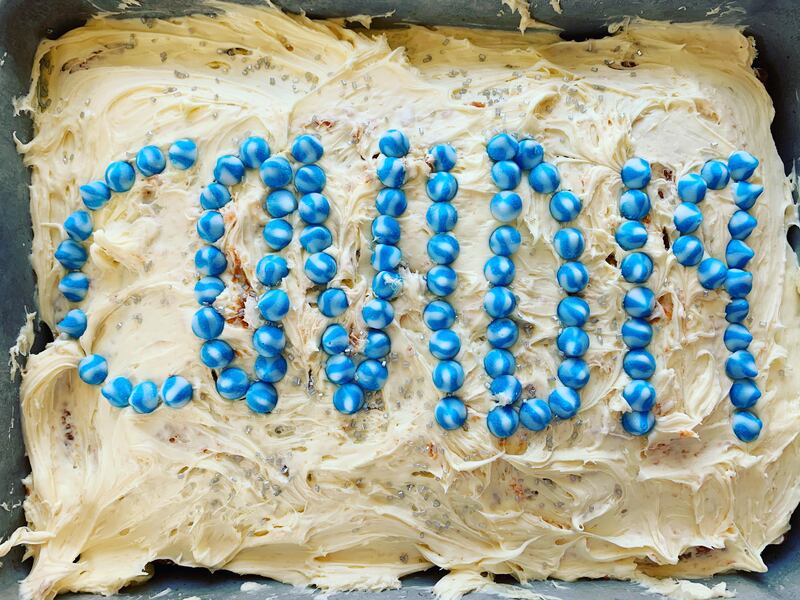 Hilary Levey Friedman, of Providence, Rhode Island, is among the self-identified stress bakers posting photos of her creations on social media. On Instagram, she shared a photo of a strawberry cake she made with a Betty Crocker mix, then decorated with candy morsels that spelled COVID 19.