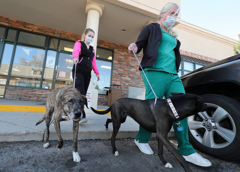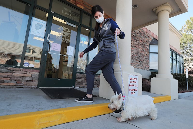 Chapman’s Draper Animal Hospital closed its doors to all humans — except staff — on March 16, a week ahead of Utah’s order. The hospital has reduced the number of appointments to accommodate a smaller staff and promote social distancing among owners, who can drop their pets off curbside.