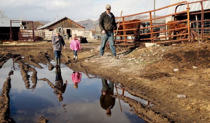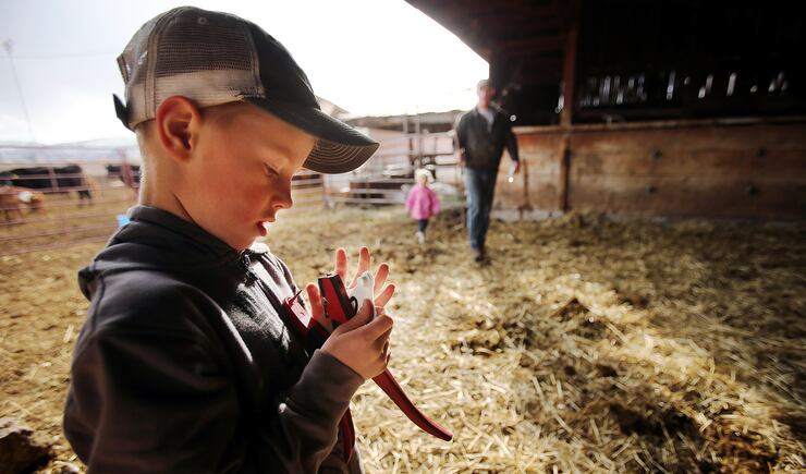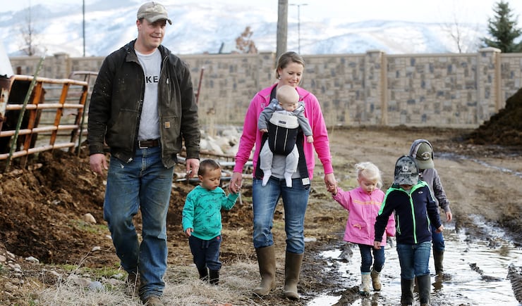 On a warm but cloudy Saturday morning in early March, Addison Hicken and his 5-year-old son Evan are at their home in Heber City. Addison Hicken is 34, the same age as his wife Jenn, whom he met in the fourth grade at a local Heber City elementary school. There’s a huge pine tree in the front yard, and a faint smell of manure. Addison Hicken walks out from around the back with Evan. They’re wearing matching jackets and rain boots covered in mud.