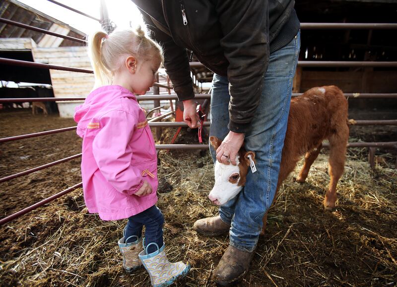 At just 5 years old, Evan knows his way around cows, and expertly maneuvers around the enormous, wide-eyed creatures. He and his sister, who is 2, wrestle over a hose used to fill the water trough. “It’s important to raise kids in the dirt,” Addison Hicken says. That’s the main reason they’ve kept a couple dozen beef cattle around.