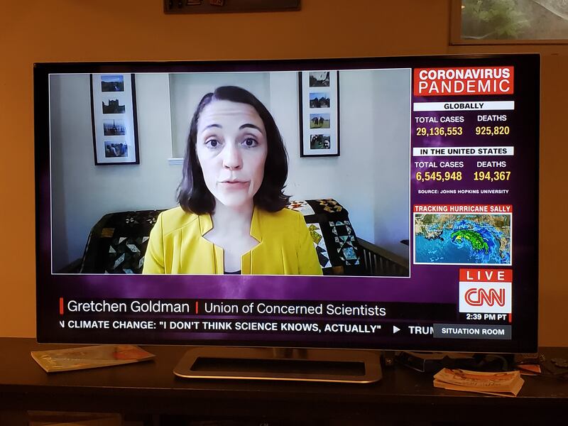 The first photo shows Goldman — who is research director for the Center of Science and Democracy at the Union of Concerned Scientists and has a Ph.D. in environmental engineering from the Georgia Institute of Technology — during a Monday interview with CNN.