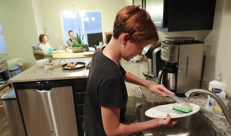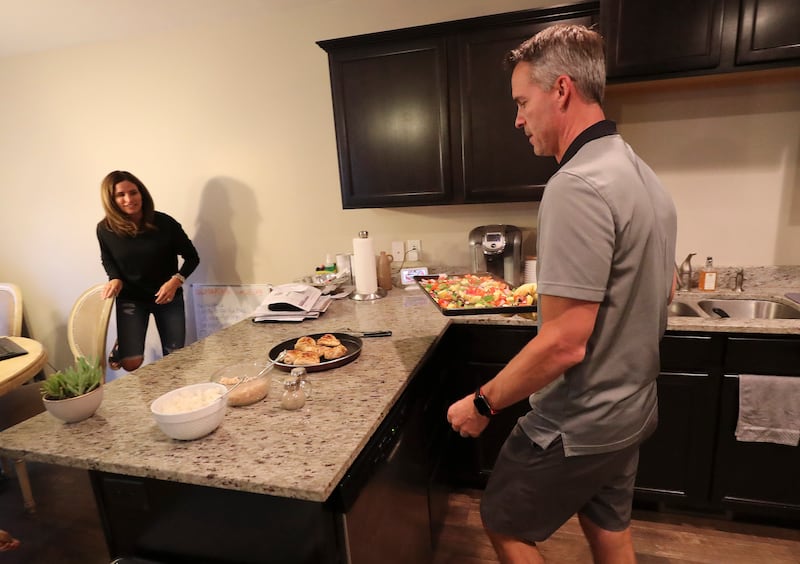 Before they married, Thayne lived alone and was used to cooking for himself and cleaning, so it wasn’t a big adjustment. But the pandemic has created more housework for everyone.