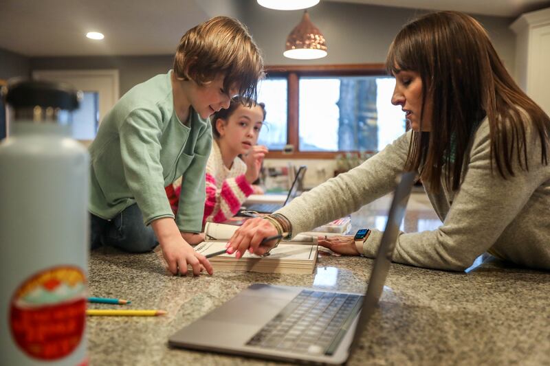 Toggling between meeting the needs of her children and those of her employer is familiar territory for Kim Millard, a Layton mom who works part time from home and has children in every school age range. She and her husband, Miles, have a preschooler, a grade schooler, a middle schooler and a high schooler. And Miles now works from home, too, so Kim Millard has set up a temporary office in the kitchen.