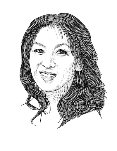 In late August of 2018, I taught my first class. And I hadn’t been feeling well for a week. I had a high fever. I was kind of dizzy and nauseous and had terrible stomach pains. But being the tiger mom and being raised with a lot of grit, I downed Advil and thought, “I can push through.” The next morning, I was rushed to the emergency room. Within 24 hours, I had eight tubes stuck in me. I was in the ICU, all my organs failing. Nobody knew what was happening. When they finally opened me up, they discovered a 2-centimeter hole in my colon, just a freak medical thing. I was so lucky. In the end, it was not cancer, just diverticulitis. I was in the hospital for three weeks, I came out in a wheelchair, I lost all my hair. I was out for a whole year.