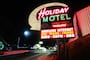 From Karr’s diner, the red and white signage of the Pioneer Hotel, a three-story brick building that usually hosts the annual National Cowboy Poetry Gathering, is visible.