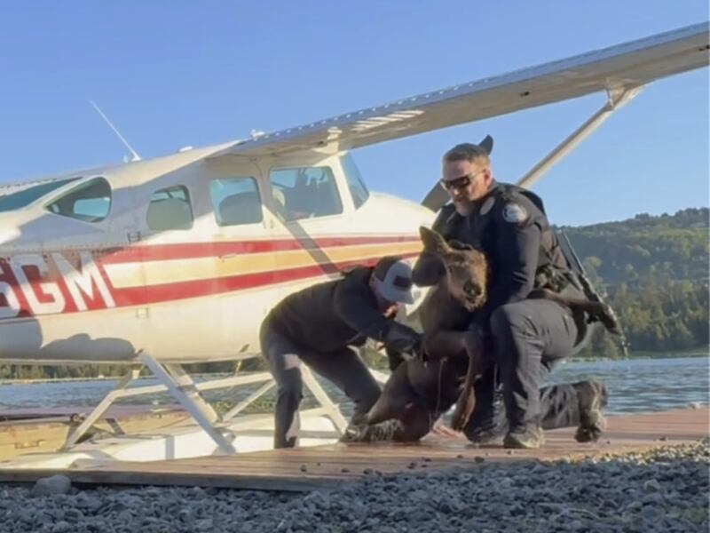 “Sometimes you really get to do something important in life,” the Homer Police Department said on Facebook. “Our hats are off to Officers Morgan Tracy and Charles Lee, who helped rescue a moose calf from sure demise early this morning. Thank you to Spencer Warren for capturing this cool moment and helping out.”