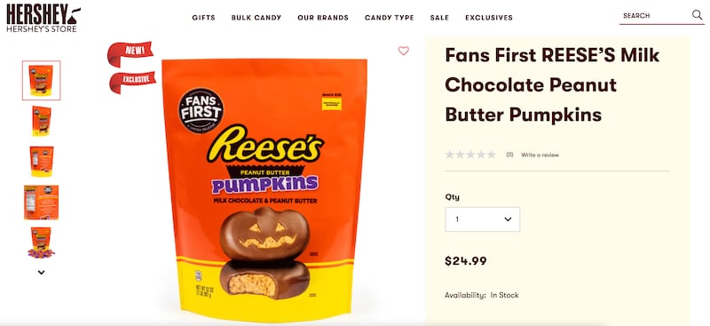 For some, it’s never too early to begin preparations for Halloween. The Hershey Company seems to agree. “Why wait for Halloween? Now, you can have REESE’S Peanut Butter Pumpkins sent to your doorstep,” says their website.