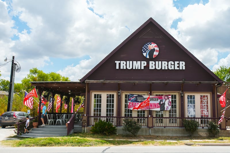 A Donald Trump impersonator, dozens of American flags and a burger with the word “Trump” stamped into the bun are all things a customer might see on a visit to any of the four Trump Burger locations in Texas.