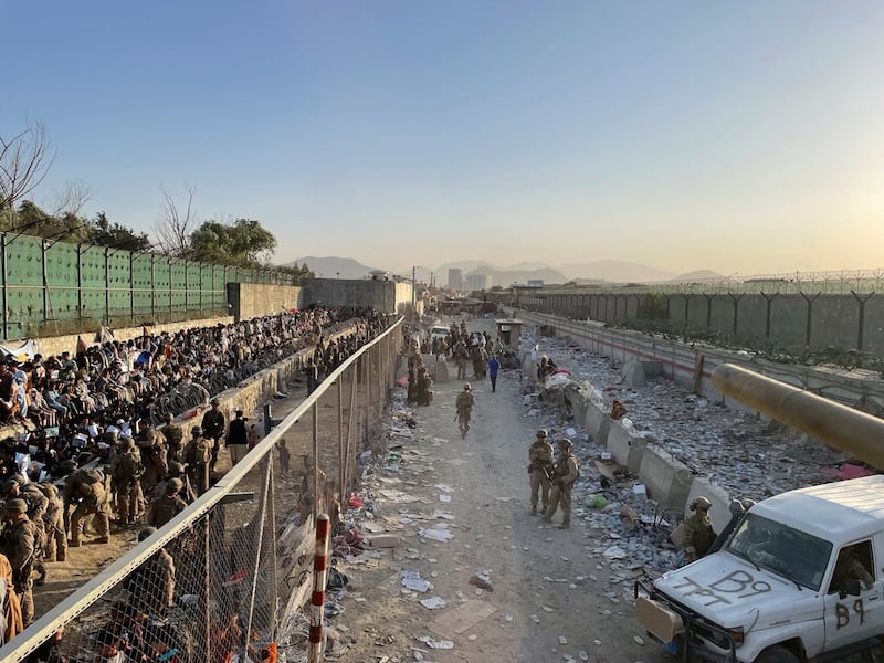 On the news, Haafiz saw thousands of people flocking to the airport, a frantic epicenter of hope. Cars sat abandoned in miles of gridlock traffic as people set out on foot, desperate to board the military planes departing every few hours. Images of people clinging to departing airplanes flashed on screens across the world — they soon became a haunting symbol of desperation and downfall of the Afghan state.