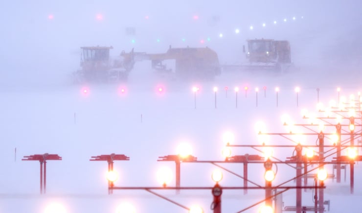 According to NBC News, New York-area airports have stopped all operations, with no arrivals or departures scheduled. John F. Kennedy International Airport reported 1,087 cancellations, LaGuardia had 1,025 and Newark Liberty had 861.