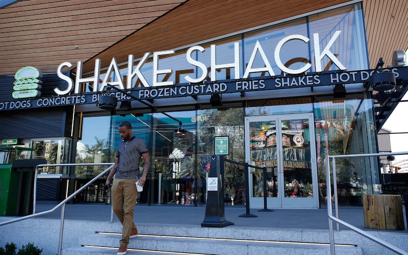 In this April 15, 2015, file photo, a man walks out of the Shake Shack in front of the New York-New York hotel and casino in Las Vegas. | John Locher, Associated Press