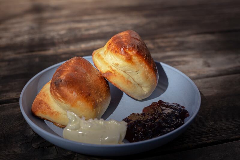On a summer afternoon at Ruthie’s, a sharp knife chop-chop-chops against a dull board just out of sight, resonating across the courtyard. The stream from a high-pressure hose hisses against dishes. Plumes of smoke puff from the wood oven, splashing the patio with oaken perfume. Soon, Mohr will serve up more heaping plates of rolls alongside pools of jam and piles of fresh butter. When he does, he shares more than food, because these rolls always transport Mohr back to his youth. It simply wasn’t a family gathering without them; his uncle John was even known to protest if they were absent.
