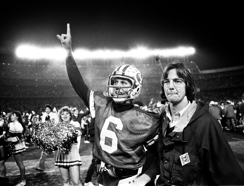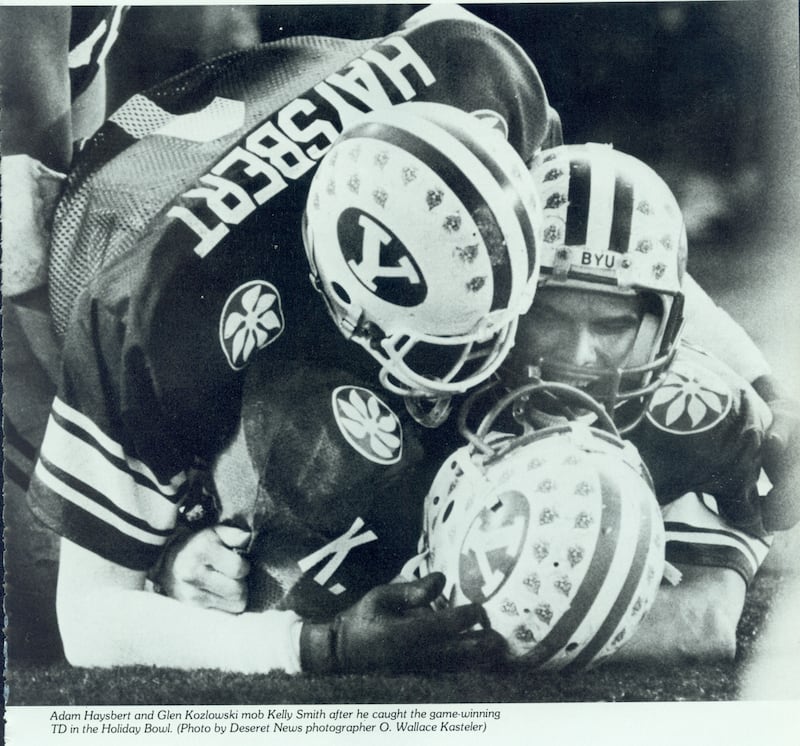 Bosco fired a completion to Davis Mills. Then another to Adam Haysbert. Star wideout Glen Kozlowski sealed the drive — and the tie — by snatching a Bosco lob from over a defender’s outstretched arm. Chants of “B-Y-U!” echoed. Bosco, still hopping around nearly one-legged, felt something close to divine energy when looking out at his teammates. “Being in that huddle, I could just see it, and sense it in their eyes,” he remembers now. “And in their feeling that we were on the same page. And we can do this.”