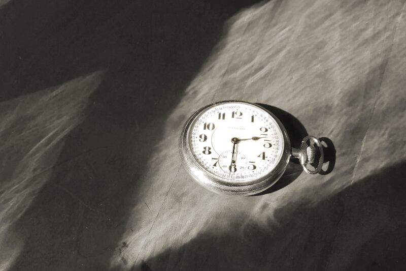 My grandfather would read Raymond Chandler mystery novels at night while lying on the couch. He’d sometimes read aloud to me, saying a phrase in Italian. I didn’t understand, but I liked the rhythm he gave the words. When he finished, he would pick up his pocket watch, look at it intently, and announce it was time for bed. Upstairs, he would place the watch on my nightstand and I would fall asleep to the rhythm of its ticking.