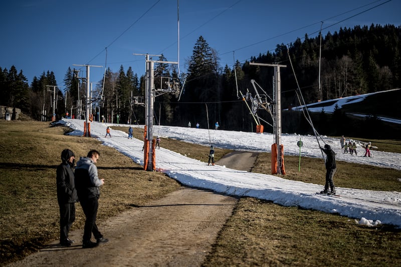 It’s a trend that has begun swallowing resorts in Europe. In France, multiple longtime ski areas have called it quits. In Switzerland, one outfit had to order a snow delivery via helicopter. In Germany, spectators watched biathlon skiers zip by on a human-made ribbon of white while the rest of the hillside was green and brown. Resorts across the Alps couldn’t open during Christmas because rain fell instead of snow.