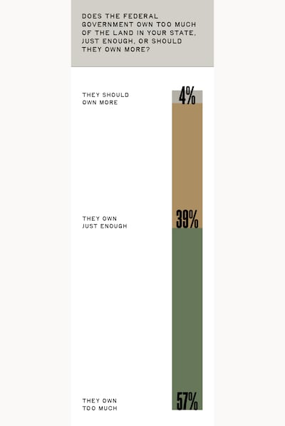 As decades passed, relations with the state’s federal landlords simmered and finally boiled over after Congress passed the Federal Land Policy Management Act, or FLPMA, in 1976, which ended homesteading and redefined the Bureau of Land Management’s mission to prioritize multiple uses of the lands it managed in the West. In addition to natural resource extraction and grazing, the law mandated recreation and conservation as legitimate uses of government land. Nevada and Utah state legislators introduced a number of bills and filed lawsuits attempting to transfer control of federally owned public lands from Uncle Sam to the states — none of which stuck. It wasn’t just FLPMA, either, but the culmination of years of frustrations felt by Westerners who thought that the government’s presence in the West was heavy-handed — imposing oversight and regulations that ignored the needs of those living closest to the land.
