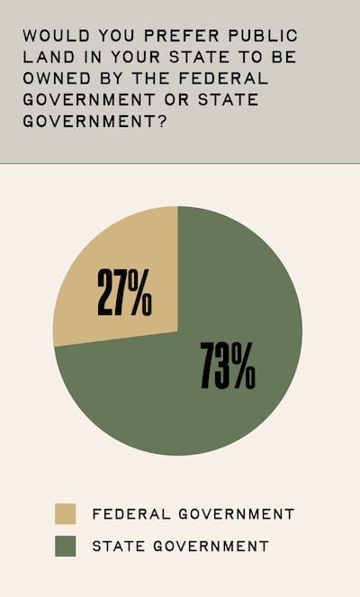 Conducted in November, following the presidential election, pollsters surveyed 1,512 registered voters in Arizona, Colorado, Idaho, Nevada, New Mexico, Utah and Wyoming. Nearly 75 percent of respondents would prefer their state’s public land to be owned by the state rather than the federal government.