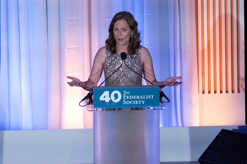 She tried selling young Federalist Society members on forgoing the path of least resistance — prestigious clerkships and major firms and second homes (even though she has a second home, she joked, so no shame in that) — in favor of service to upholding conservative principles in the law and “defend(ing) the most vulnerable in our nation.” She charted a future where the “fork in the road” is a choice between the way things have been and a new, mission-driven era.