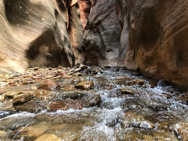 By the time we reached a turn in the trail and entered the stream fully to follow a slot canyon to the end, I was having serious doubts about my ability to complete this hike. It was beautiful, but it was painful.