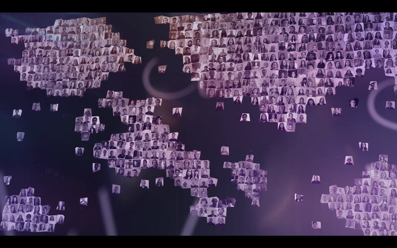 As one and then 40 and then thousands of faces glide across the screen, each adds their voice to the global chorale, forming the visual of nations fused through shared experience.