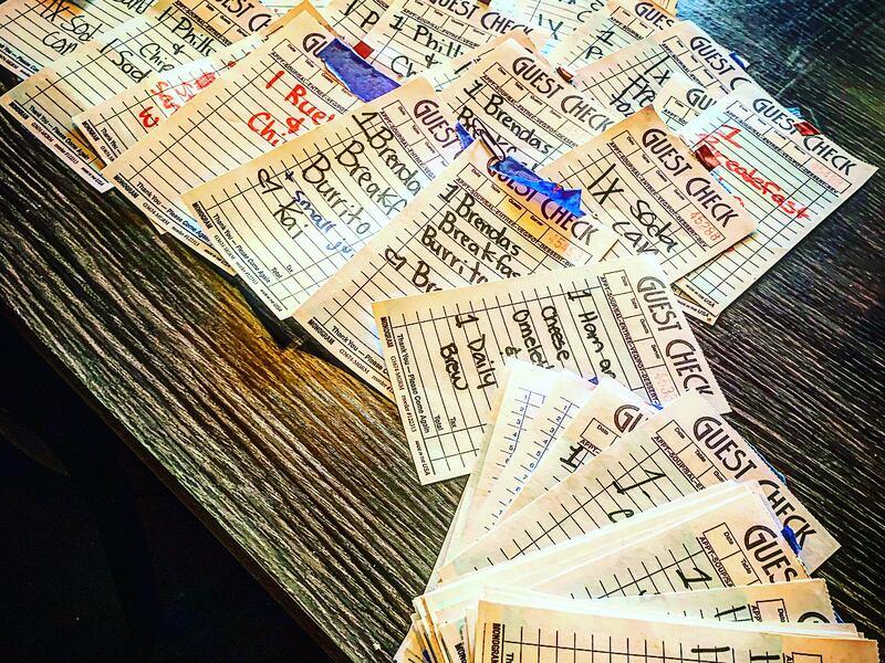 The cafe is home during COVID-19 to a “pay it forward” wall, which means you can call up and order from the menu and pay for a meal with no expectation of ever receiving that meal. Instead, the items you choose are written on the little green and white pad that servers seem to carry in every eatery in the universe. And then the slip will be torn off and posted so that someone who’s down on their luck can come in and have a meal on the goodwill of a stranger.