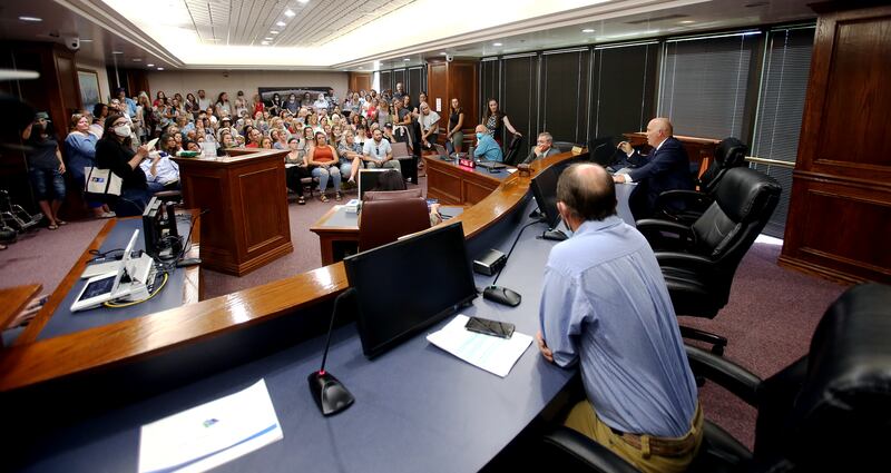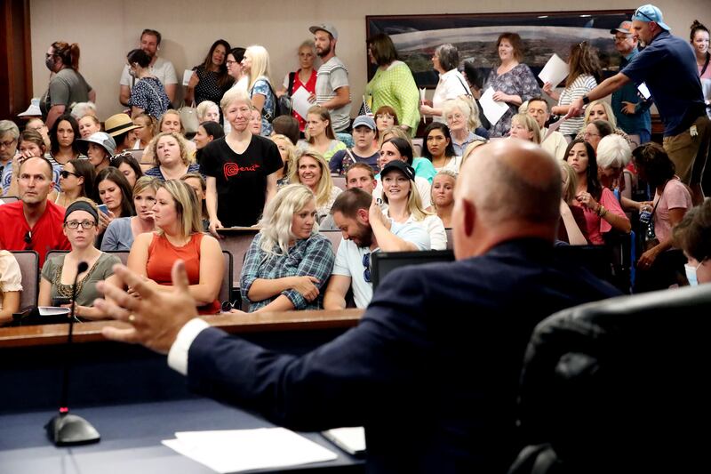 North of St. George in Utah County, in the middle of summer, another image made national news. On July 15 Utah County Commissioner Tanner Ainge called an abrupt end to a meeting about masks in schools before it got underway, because the meeting room was filled shoulder-to-shoulder with people not wearing masks.