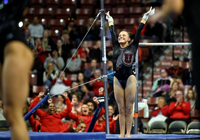 “I think it will help separate some of those questionable landings, where you wonder, ‘Did she really hold it, did she really show control?’ As long as judges continue to take it, right? It will, maybe, help separate some of those 10s that maybe weren’t a really solid and controlled landing,” Utah gymnastics coach Carly Dockendorf said following Utah’s season-opening meet against Boise State.