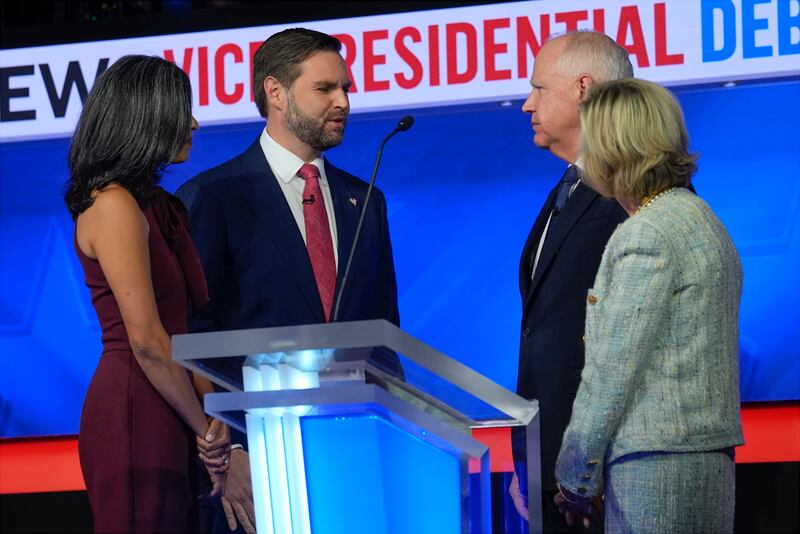 Both of them had plenty to gain by showing themselves to the nation as amiable, level-headed and reasonable Tuesday night. Yes, moderators had to cut their microphones as Vance insisted on pursuing the legal distinctions of Haitian refugees in Ohio. That hardly seemed to matter much, however, other than to Republicans who noted CBS had said it wouldn’t fact check the candidates live, but that viewers could follow a QR code to online fact checks.