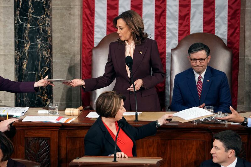 Some pundits have referred to Vice President Kamala Harris presiding over the certification on Monday of her own defeat in the race for president in 2024 as awkward or difficult.