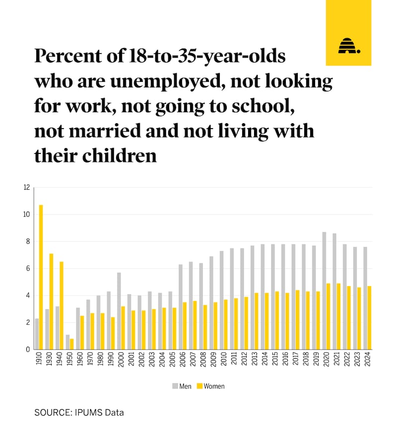 No family, no job, no school. The proverbial guy in his 20s sitting in his mother’s basement playing video games is a reality for a not-insignificant number of men.