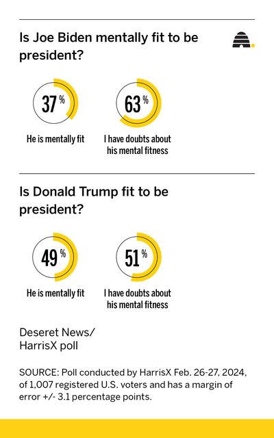 Americans have a dimmer view of Biden’s mental acuity than they do of Trump’s, according to a new Deseret News/HarrisX poll.
