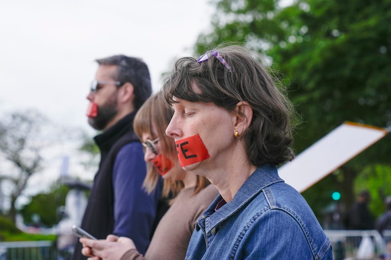 The New York Times reported that more than 100 people took part in demonstrations outside the building, carrying signs with messages like “Abortion saves lives” and “Pro-life. Pro-women.”
