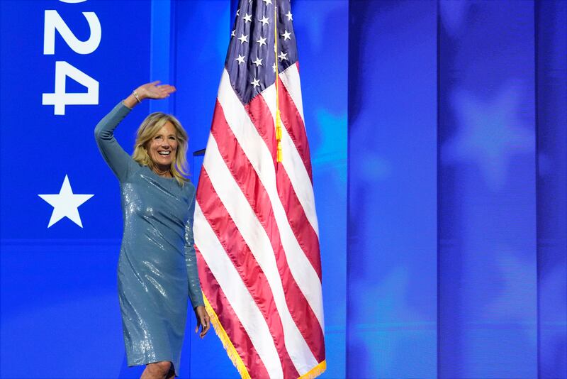 Jill Biden spoke about her love for her husband, saying she has fallen in love with him “over and over.” She told stories about Biden reading bedtime stories to their daughter, Ashley.