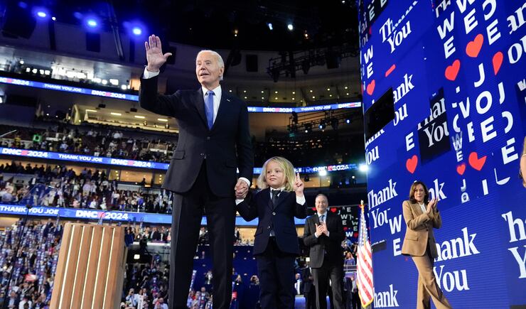 Biden took the stage to a loud ovation, as delegates stood and waved “We love Joe” signs. As he took the podium, Biden wiped tears from his eyes. Applause and chants of “thank you, Joe” and “we love Joe” went on for several minutes.
