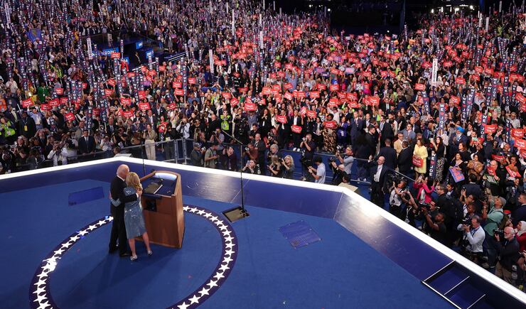 She returned onstage after Biden’s speech, hugging the president and greeting the audience with him for several minutes after his address concluded.