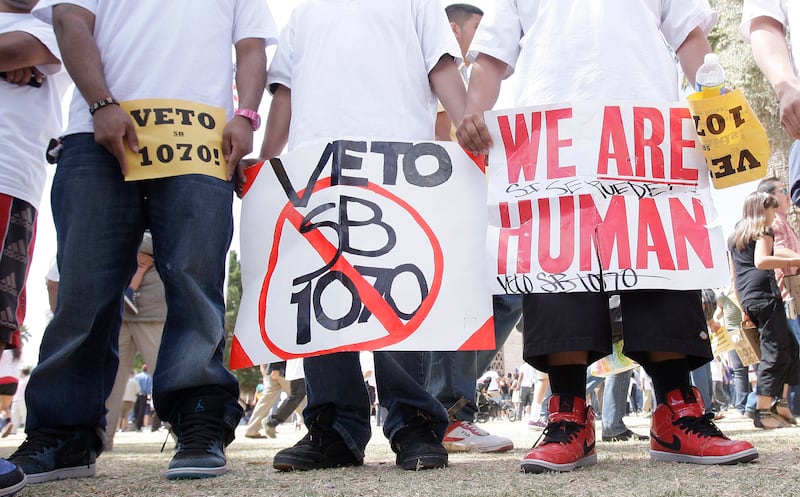 The bill’s opponents do not think that is good enough. During a heated discussion in May, state Sen. Anna Hernandez, a Democrat representing Phoenix, asked Bennett whether law enforcement officials could send video surveillance footage to police officers in other parts of the state, empowering them to find undocumented immigrants in their communities. Bennett, in response, said he didn’t think that is how “law enforcement works,” the Arizona Mirror reported, though he admitted no geographical limit was added to the bill.