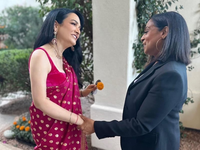 SCOTTSDALE, Ariz. — While campaigning for the Harris-Walz campaign, Vice President Kamala Harris’ sister Maya Harris stopped by a Diwali party in this western swing state to celebrate one of the biggest Hindu festivals, a little more than a week before Election Day.