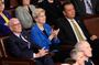 “America is back!” Trump said in his opening remarks, resulting in loud applause and a standing ovation from Republicans. Democrats stayed largely stoic.